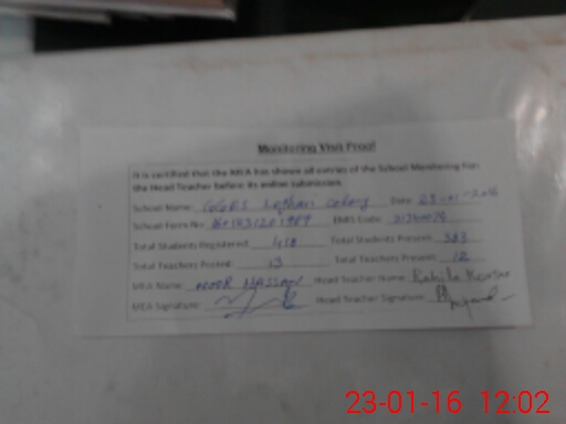 | Certified that this School was Inspected by the Undersigned MEA/DMO Today and the Information Stated Above is as Per Record. | |||||