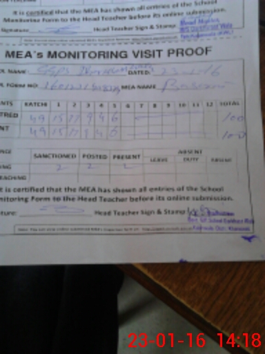 | Attendance Register | Head Teacher | MEA with School | Visit Proof |