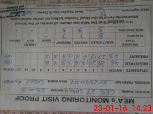 | Monitoring Date: 23-01-2016 | Start Time: 23-01-2016 01:13 PM | End Time: 23-01-2016 02:25 PM | Name of MEA: Sa**** Ah**** | |