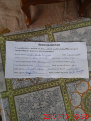 | Attendance Register | Head Teacher | MEA with School | Visit Proof |