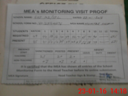 | Certified that this School was Inspected by the Undersigned MEA/DMO Today and the Information Stated Above is as Per Record. | |||||