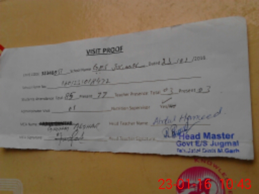 | Attendance Register | Head Teacher | MEA with School | Visit Proof |