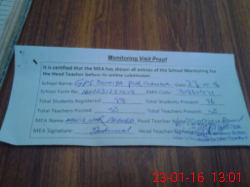 | EMIS Code: 31330471 | Name of School: GPS DUNYA PUR GANGA | |||