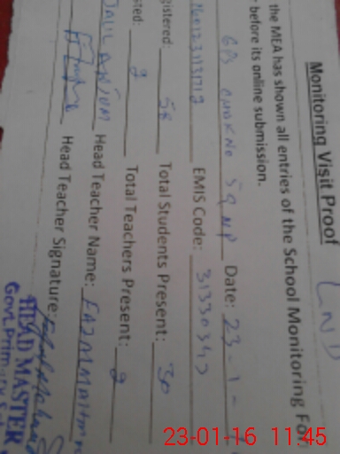 | Attendance Register | Head Teacher | MEA with School | Visit Proof |