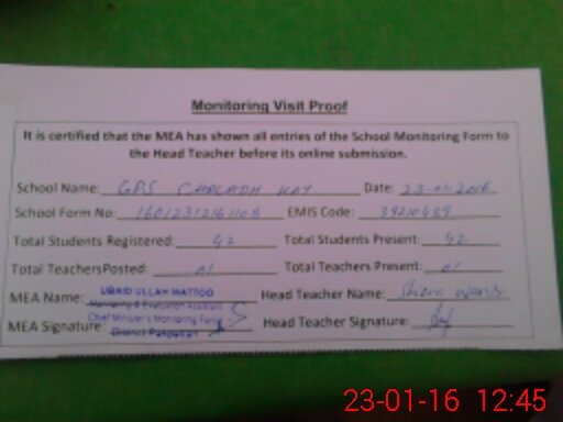 | Certified that this School was Inspected by the Undersigned MEA/DMO Today and the Information Stated Above is as Per Record. | |||||