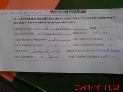 | Certified that this School was Inspected by the Undersigned MEA/DMO Today and the Information Stated Above is as Per Record. | |||||