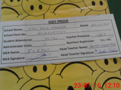 | Attendance Register | Head Teacher | MEA with School | Visit Proof |