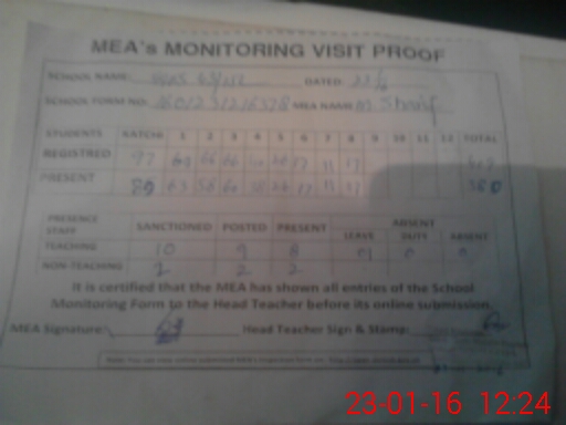 | Attendance Register | Head Teacher | MEA with School | Visit Proof |