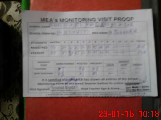 | Certified that this School was Inspected by the Undersigned MEA/DMO Today and the Information Stated Above is as Per Record. | |||||