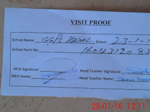 | Attendance Register | Head Teacher | MEA with School | Visit Proof |