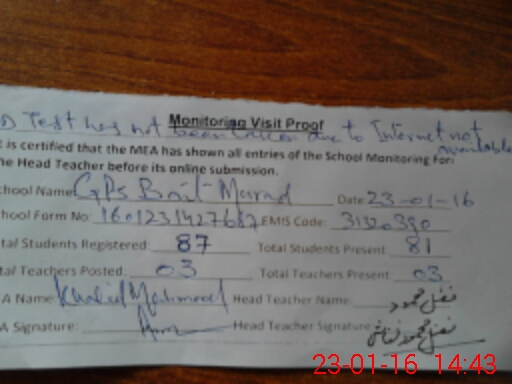 | EMIS Code: 31320390 | Name of School: GPS BAIT MURAD | |||
