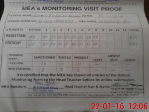 | Certified that this School was Inspected by the Undersigned MEA/DMO Today and the Information Stated Above is as Per Record. | |||||