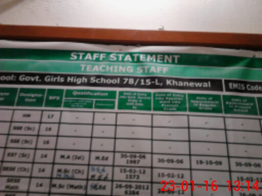 | EMIS Code: 36420657 | Name of School: GGHS 78/15-L, KHANEWAL | |||