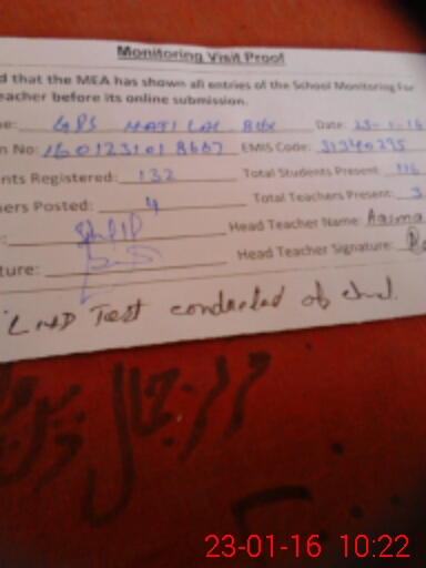 | Certified that this School was Inspected by the Undersigned MEA/DMO Today and the Information Stated Above is as Per Record. | |||||