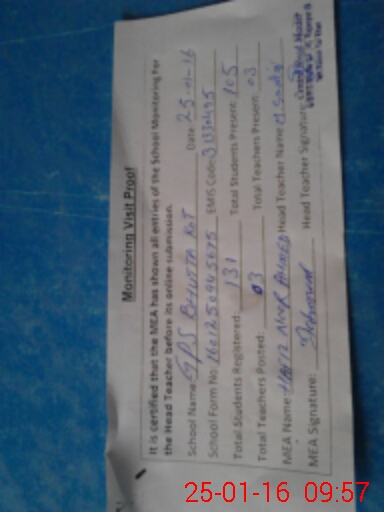 | Monitoring Date: 25-01-2016 | Start Time: 25-01-2016 09:23 AM | End Time: 25-01-2016 09:59 AM | Name of MEA: Mu**** Ah**** | |