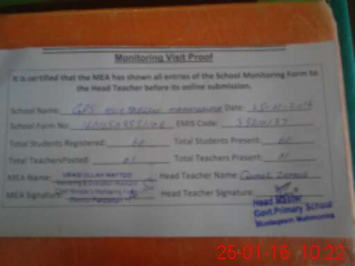 | EMIS Code: 39210197 | Name of School: GPS MUSTAQEEM MAHMONKA P/O PAKPATTAN | |||