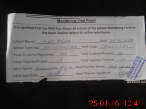 | Certified that this School was Inspected by the Undersigned MEA/DMO Today and the Information Stated Above is as Per Record. | |||||