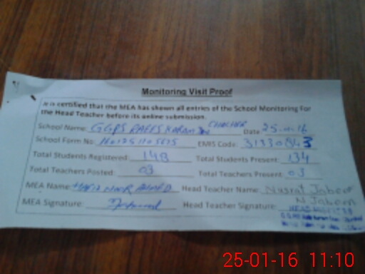 | Certified that this School was Inspected by the Undersigned MEA/DMO Today and the Information Stated Above is as Per Record. | |||||