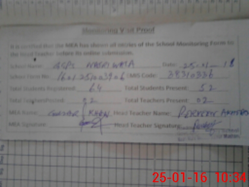 | Certified that this School was Inspected by the Undersigned MEA/DMO Today and the Information Stated Above is as Per Record. | |||||