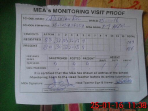 | Attendance Register | Head Teacher | MEA with School | Visit Proof |