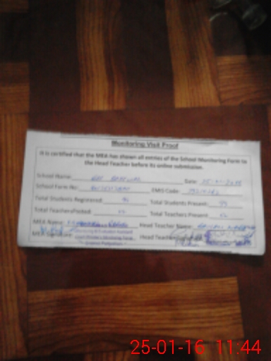 | Attendance Register | Head Teacher | MEA with School | Visit Proof |