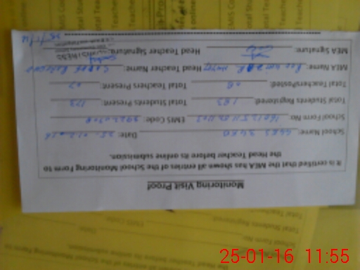 | Attendance Register | Head Teacher | MEA with School | Visit Proof |