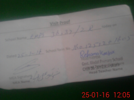 | Attendance Register | Head Teacher | MEA with School | Visit Proof |
