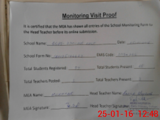 | Attendance Register | Head Teacher | MEA with School | Visit Proof |