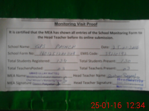 | EMIS Code: 39210192 | Name of School: GPS MOUZA PAINCH PO PAKPATTAN | |||