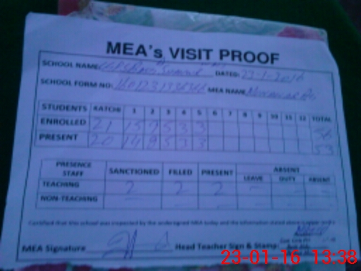 | Attendance Register | Head Teacher | MEA with School | Visit Proof |