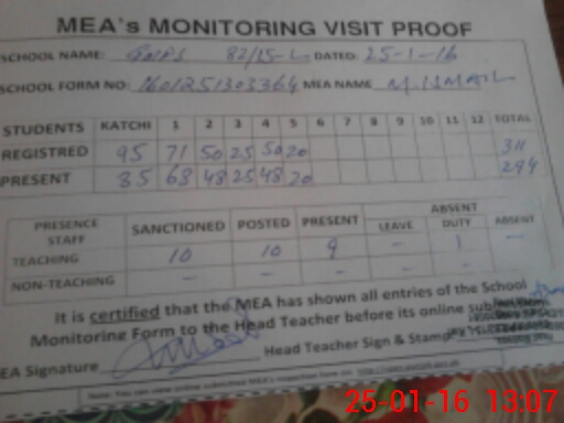 | Certified that this School was Inspected by the Undersigned MEA/DMO Today and the Information Stated Above is as Per Record. | |||||