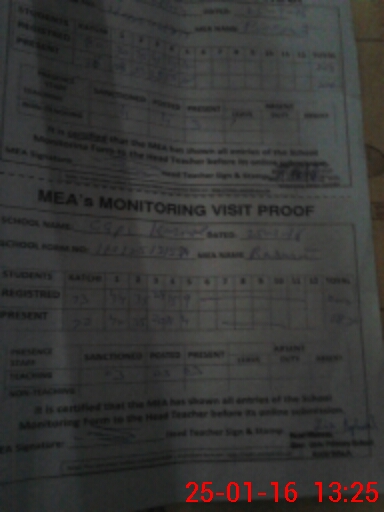 | Attendance Register | Head Teacher | MEA with School | Visit Proof |