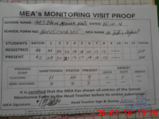 | EMIS Code: 36410171 | Name of School: GES BHENI NANAK WALI, P/O MOUZA JODH PUR, KABIRWALA | |||