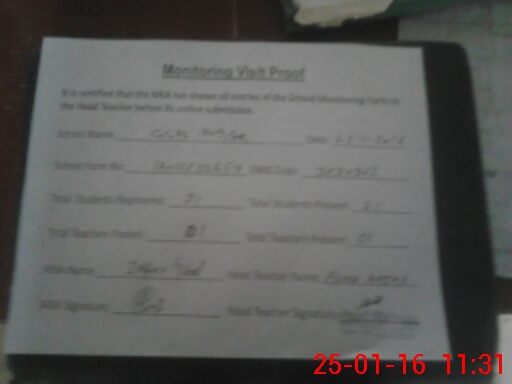 | Attendance Register | Head Teacher | MEA with School | Visit Proof |