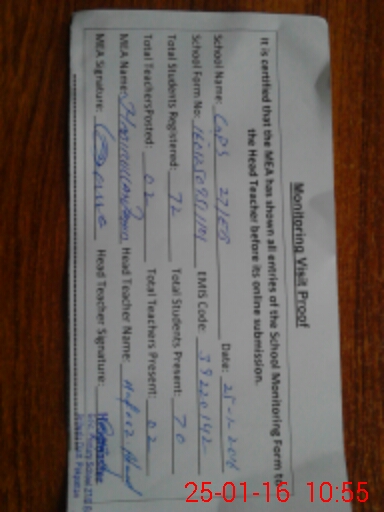 | Attendance Register | Head Teacher | MEA with School | Visit Proof |
