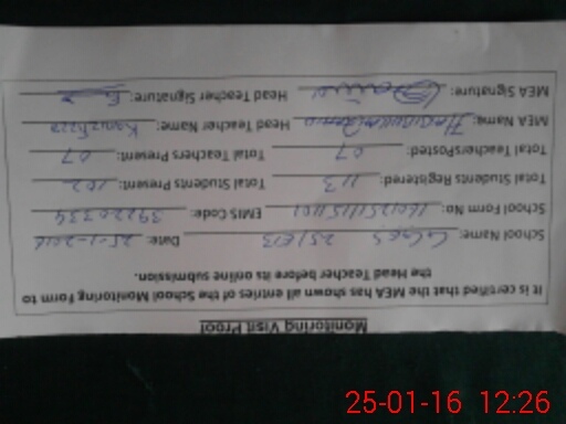 | Certified that this School was Inspected by the Undersigned MEA/DMO Today and the Information Stated Above is as Per Record. | |||||