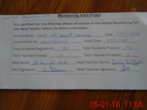| Certified that this School was Inspected by the Undersigned MEA/DMO Today and the Information Stated Above is as Per Record. | |||||