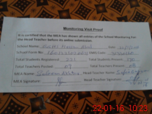 | Certified that this School was Inspected by the Undersigned MEA/DMO Today and the Information Stated Above is as Per Record. | |||||