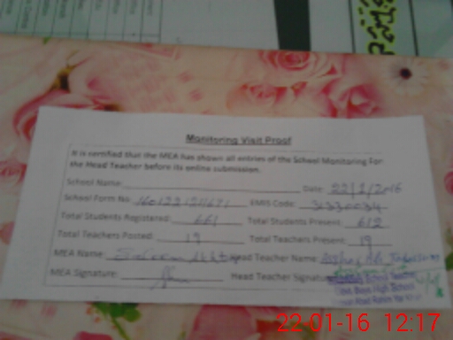 | Certified that this School was Inspected by the Undersigned MEA/DMO Today and the Information Stated Above is as Per Record. | |||||