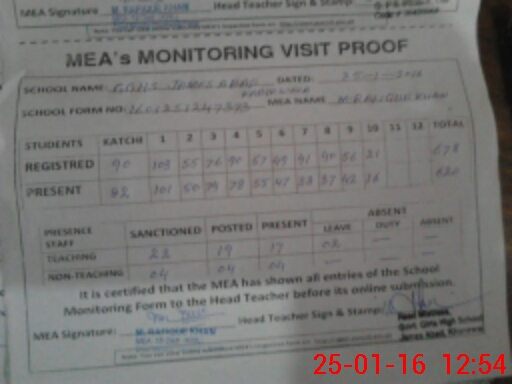 | Attendance Register | Head Teacher | MEA with School | Visit Proof |