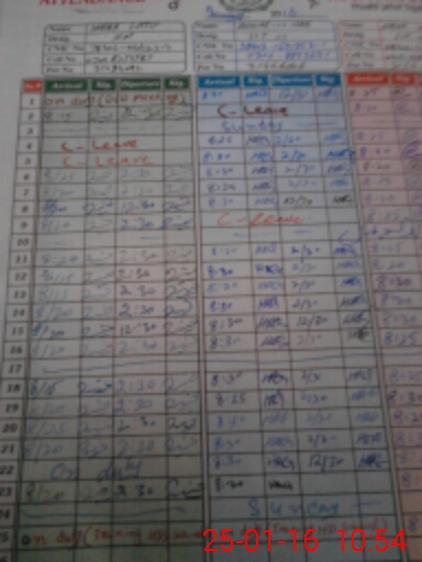 | CNIC | Full Name | Designation | R/C | Absence During Last Calender Month |