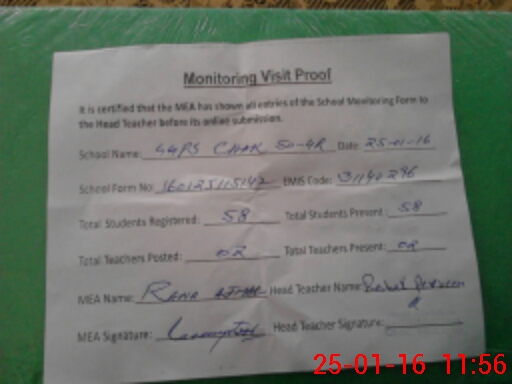 | Attendance Register | Head Teacher | MEA with School | Visit Proof |