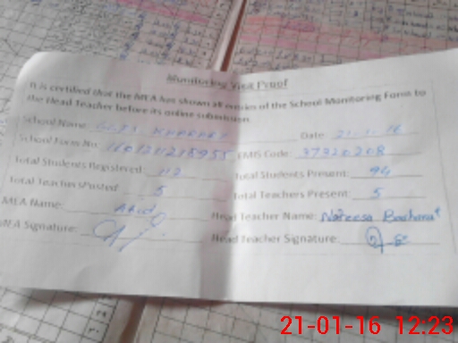 | Attendance Register | Head Teacher | MEA with School | Visit Proof |
