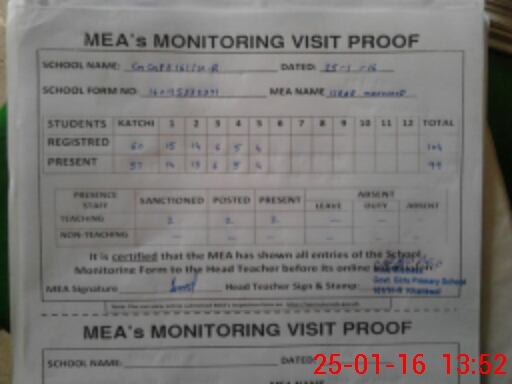 | Attendance Register | Head Teacher | MEA with School | Visit Proof |