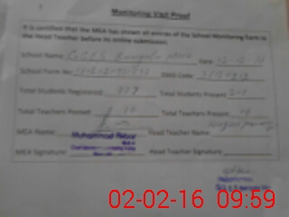 | Attendance Register | Head Teacher | MEA with School | Visit Proof |