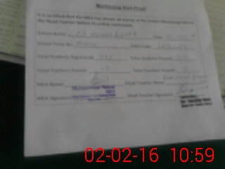 | Attendance Register | Head Teacher | MEA with School | Visit Proof |