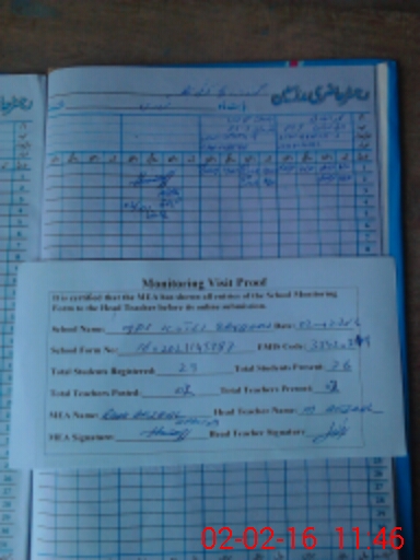 | Attendance Register | Head Teacher | MEA with School | Visit Proof |