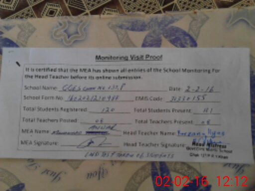 | EMIS Code: 31330155 | Name of School: GGES CHAK NO. 137/P | |||