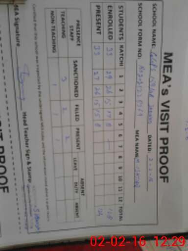 | Attendance Register | Head Teacher | MEA with School | Visit Proof |