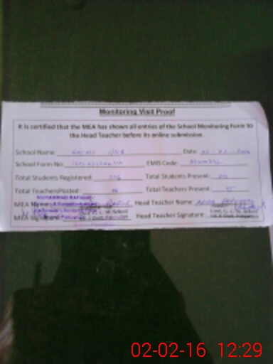 | Certified that this School was Inspected by the Undersigned MEA/DMO Today and the Information Stated Above is as Per Record. | |||||